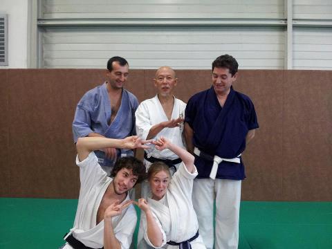 Vous l’avez vu, certains ont peut-être travaillé avec lui, Hino sensei est un vrai régal. Il est gentil, très disponible, clair. Les enchaînements de ses exercices sont cohérents et permettent de comprendre, de ressentir et d’approfondir. Il montre deux fois une situation puis il ouvre les deux mains vers le ciel comme s’il faisait un cadeau et, dans un gros sourire de défi, c’est à nous. On galère quelques minutes, puis il explique. Il nous laisse plus d’une demi-heure sur chaque exercice.