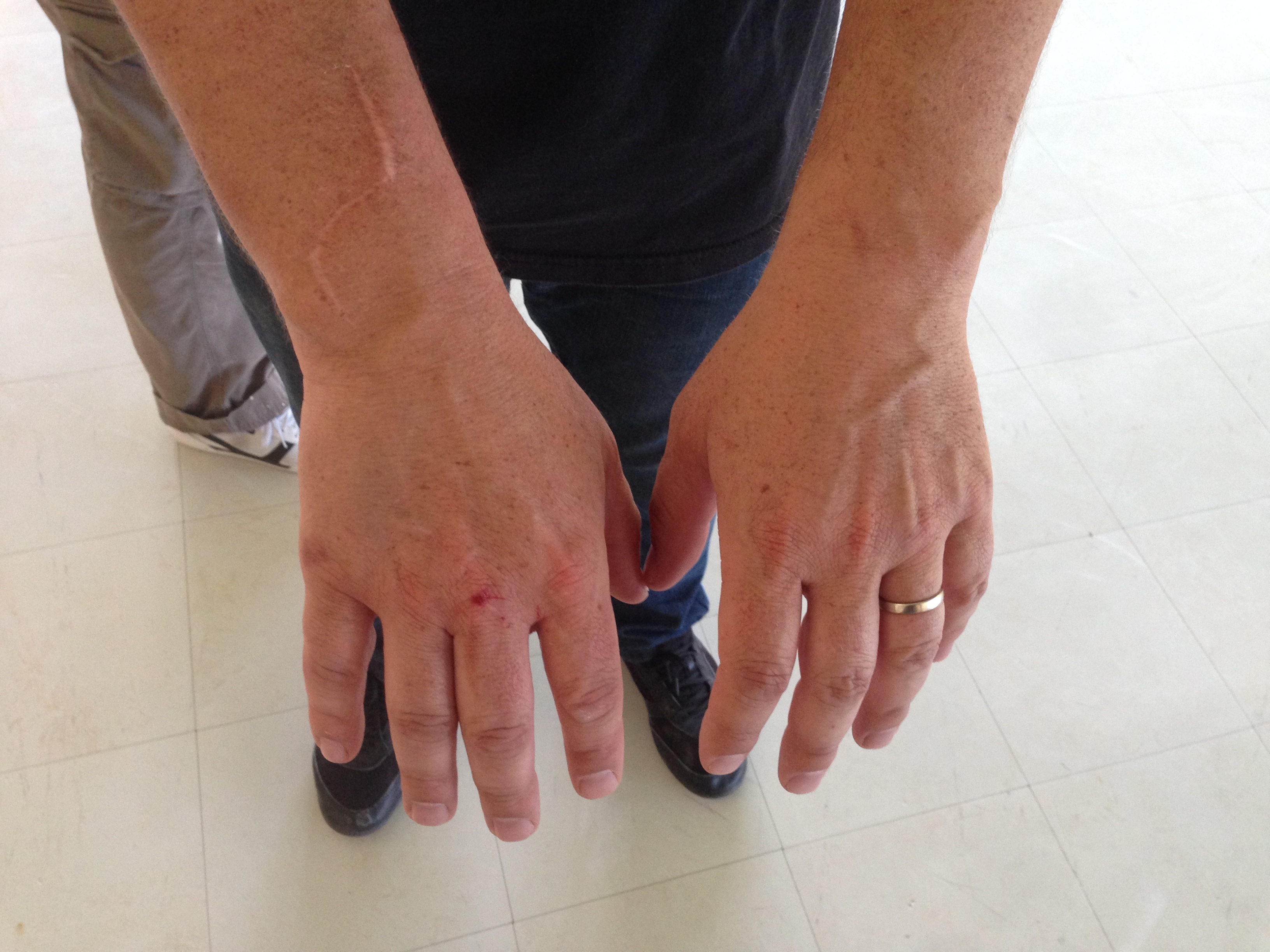 La meilleure façon de comprendre le danger d’une arme blanche passe par la compréhension de celle-ci. Nous avons donc revu le maniement rudimentaire du couteau. Consistant à s’habituer à sa tenue, son maniement, au changement de main, changement de garde. Puis nous sommes passés au travail des attaques principales ; les trois angles dans les variantes « marteau » et « pic à glace » (c’est marrant comment cette deuxième me renvoies à Sharone Stone ^^)